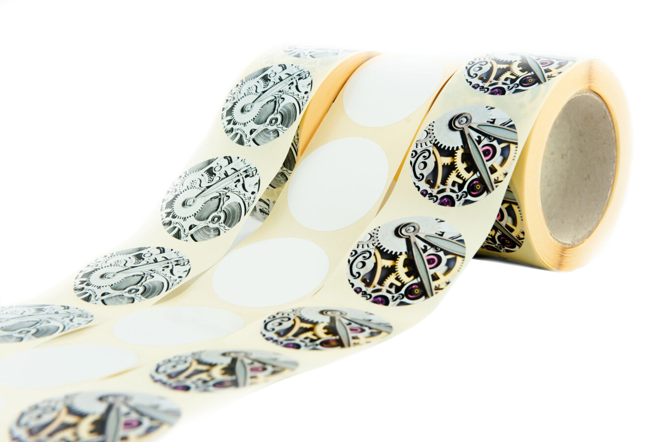 - Tryckta etiketter förgyllda/silverpläterade genom varmstansning